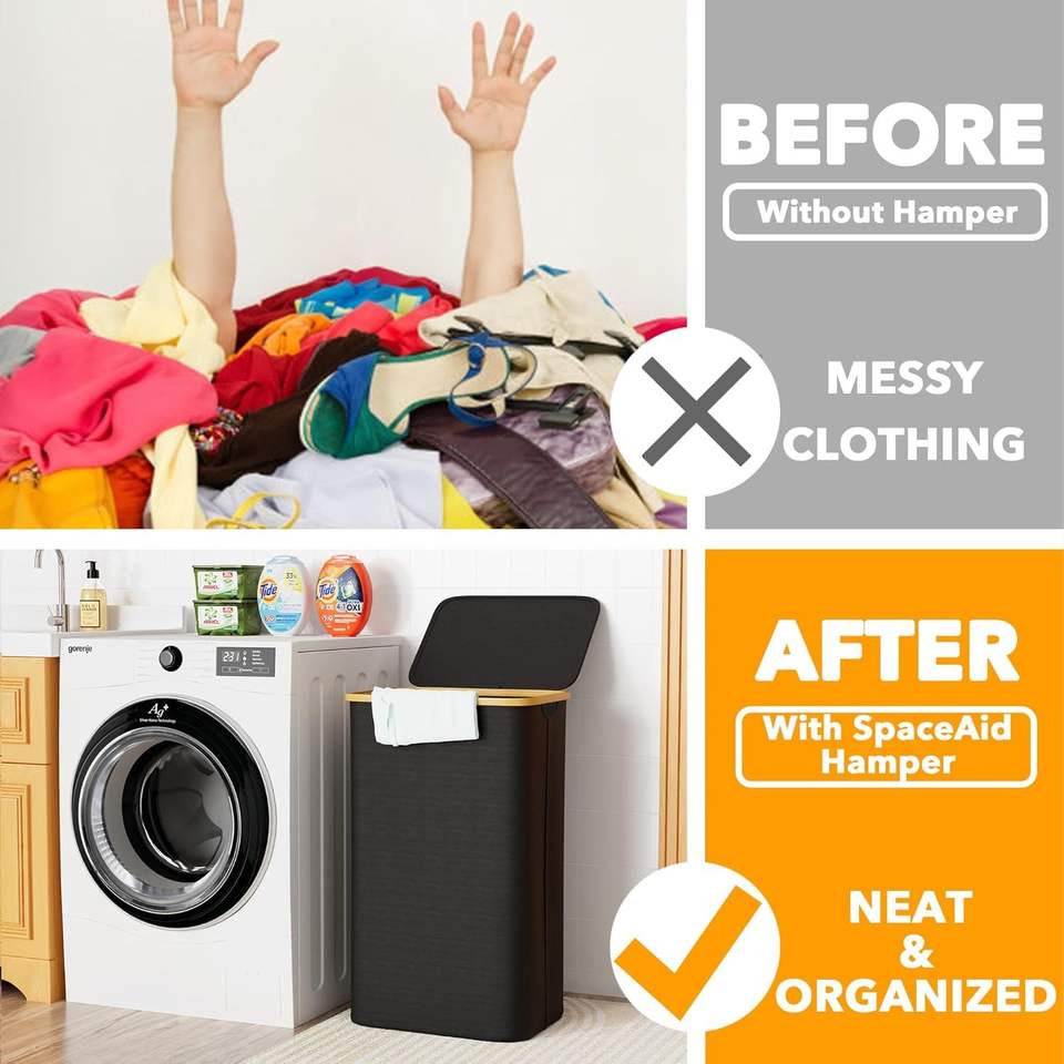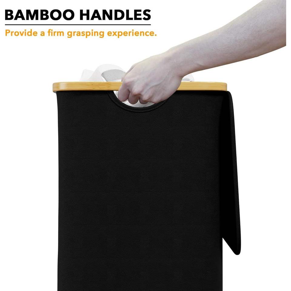 Large 110L Tall Laundry Hamper with Lid Bamboo Handles Collapsible Design for Bedroom Bathro