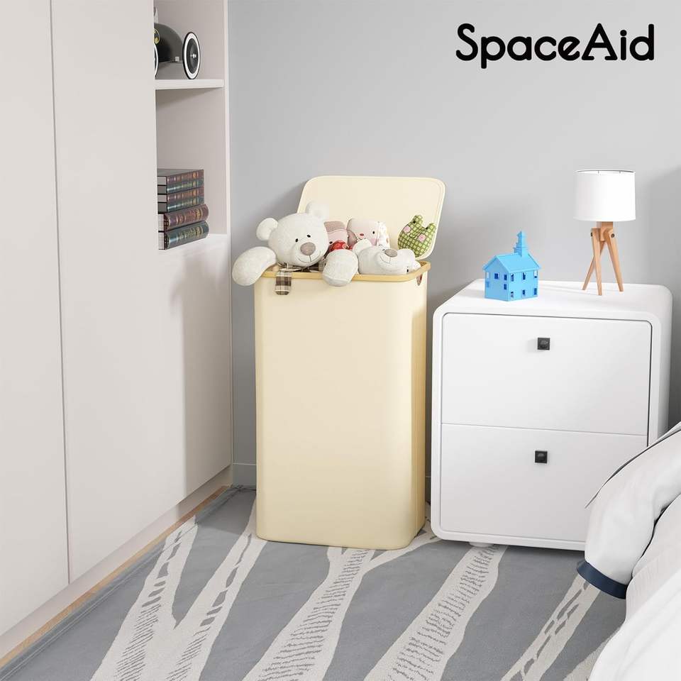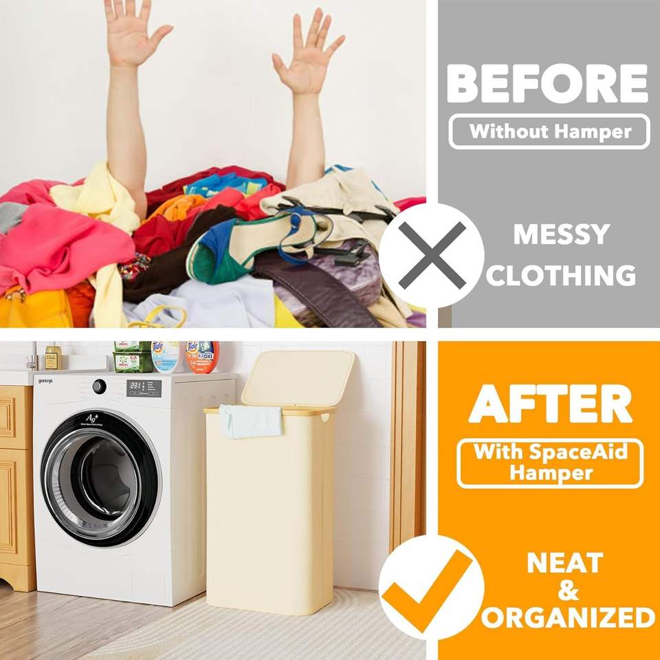 Cesto Portabiancheria Grande da 110L con Coperchio, Manici in Bambù, Design Pieghevole per Camere da Letto e Bagni, per la Conservazione dei Vestiti
