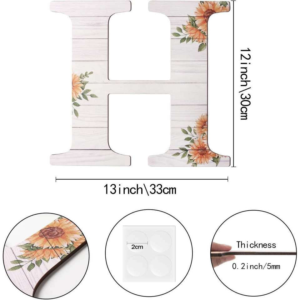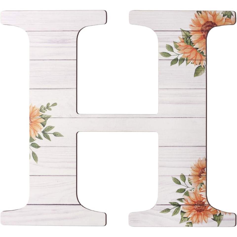 Grandi Lettere in Legno Rustico da 12 Pollici, Decorate con Girasoli, Insegne da Parete in Legno per Arredamento Casa