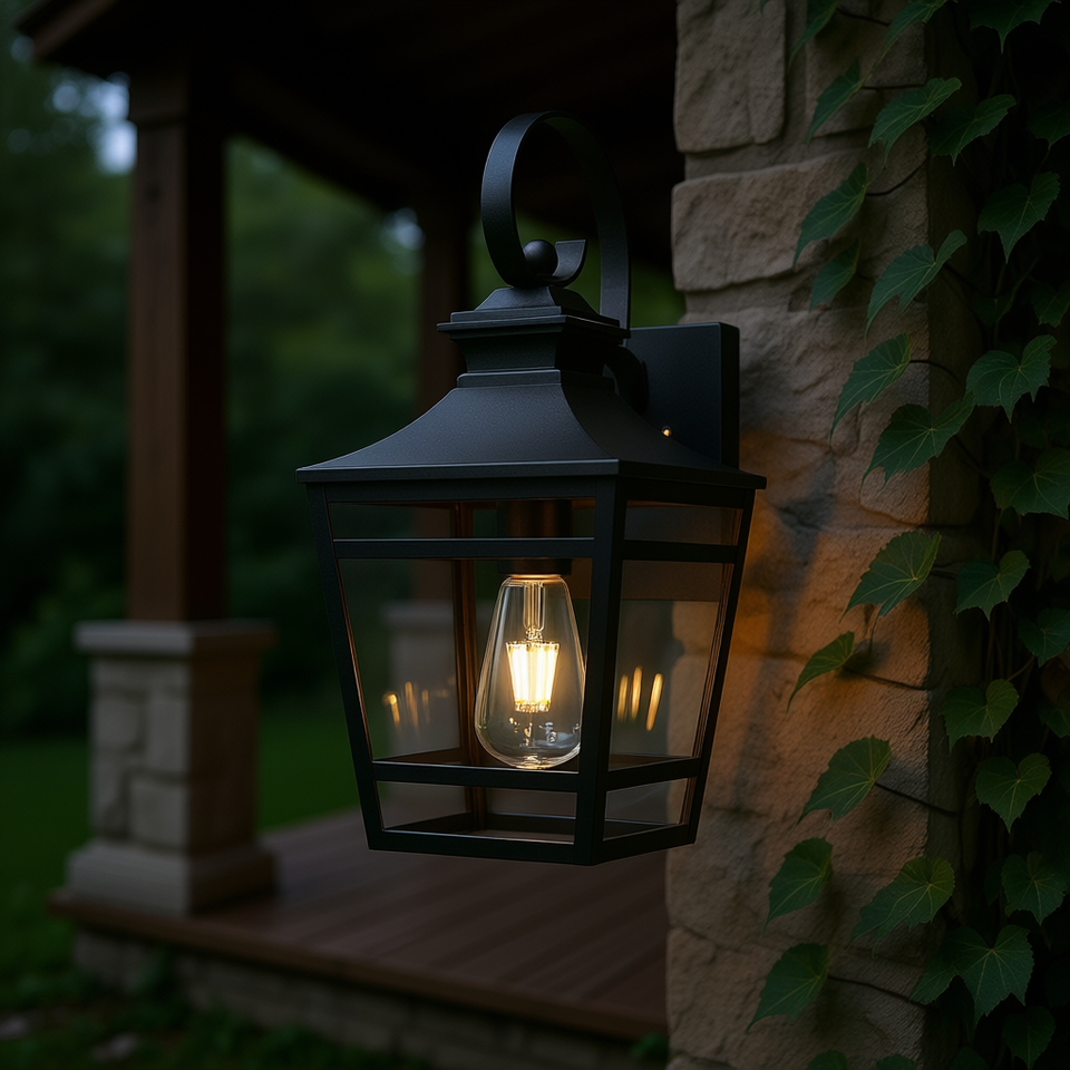Lanterna da parete per esterni in metallo nero esagonale con vetro trasparente, illuminazione a LED impermeabile per portico, patio, giardino, 16,5 pollici