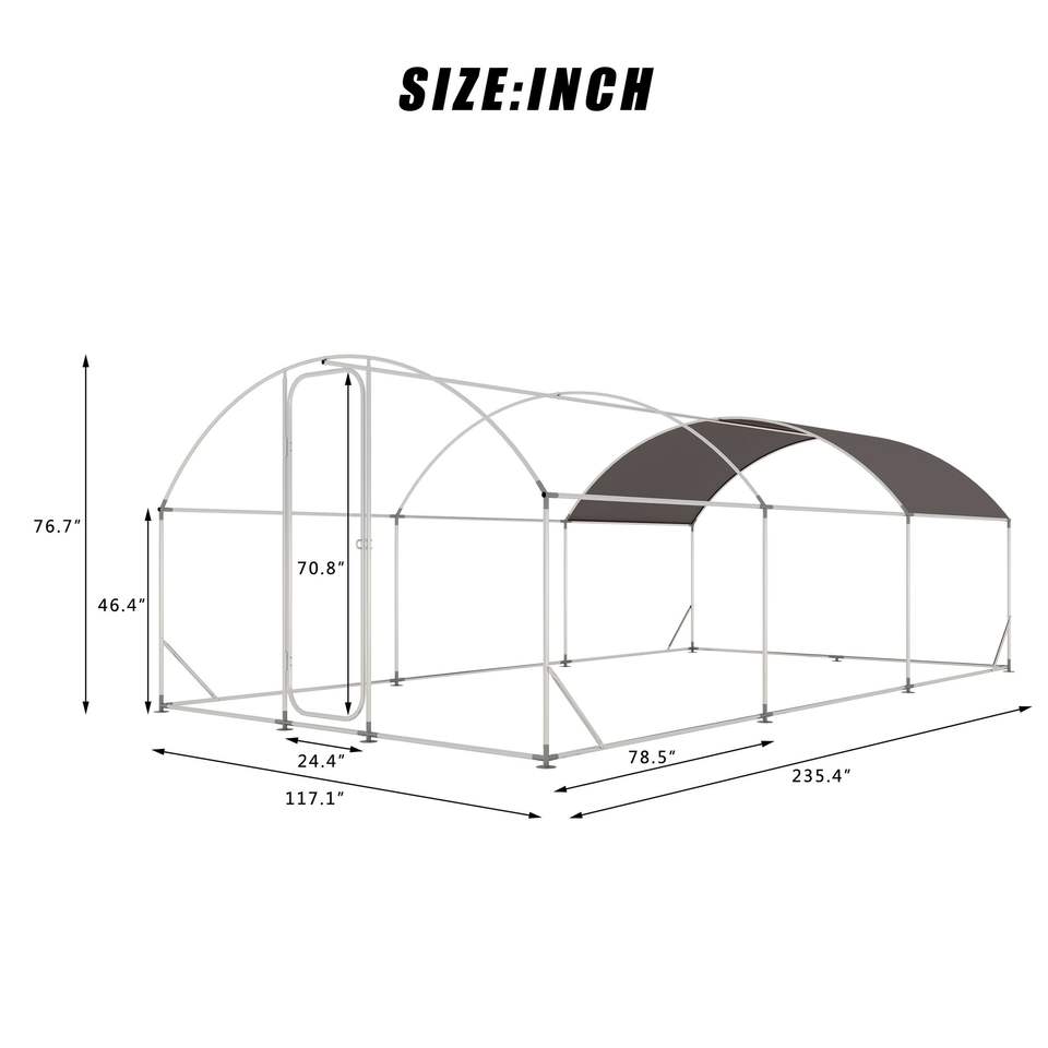 Grande Pollaio in Metallo 6x3x2m con Recinto, Gabbia per Pollame Impermeabile con Tetto a Cupola Argentato per Galline e Conigli