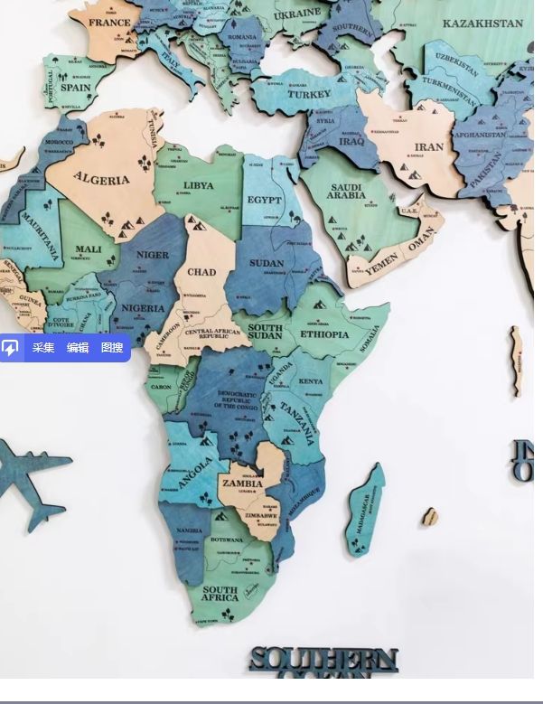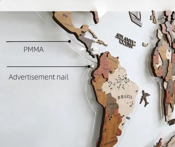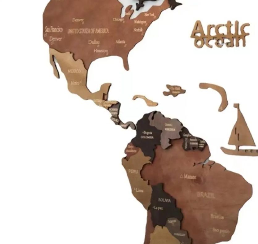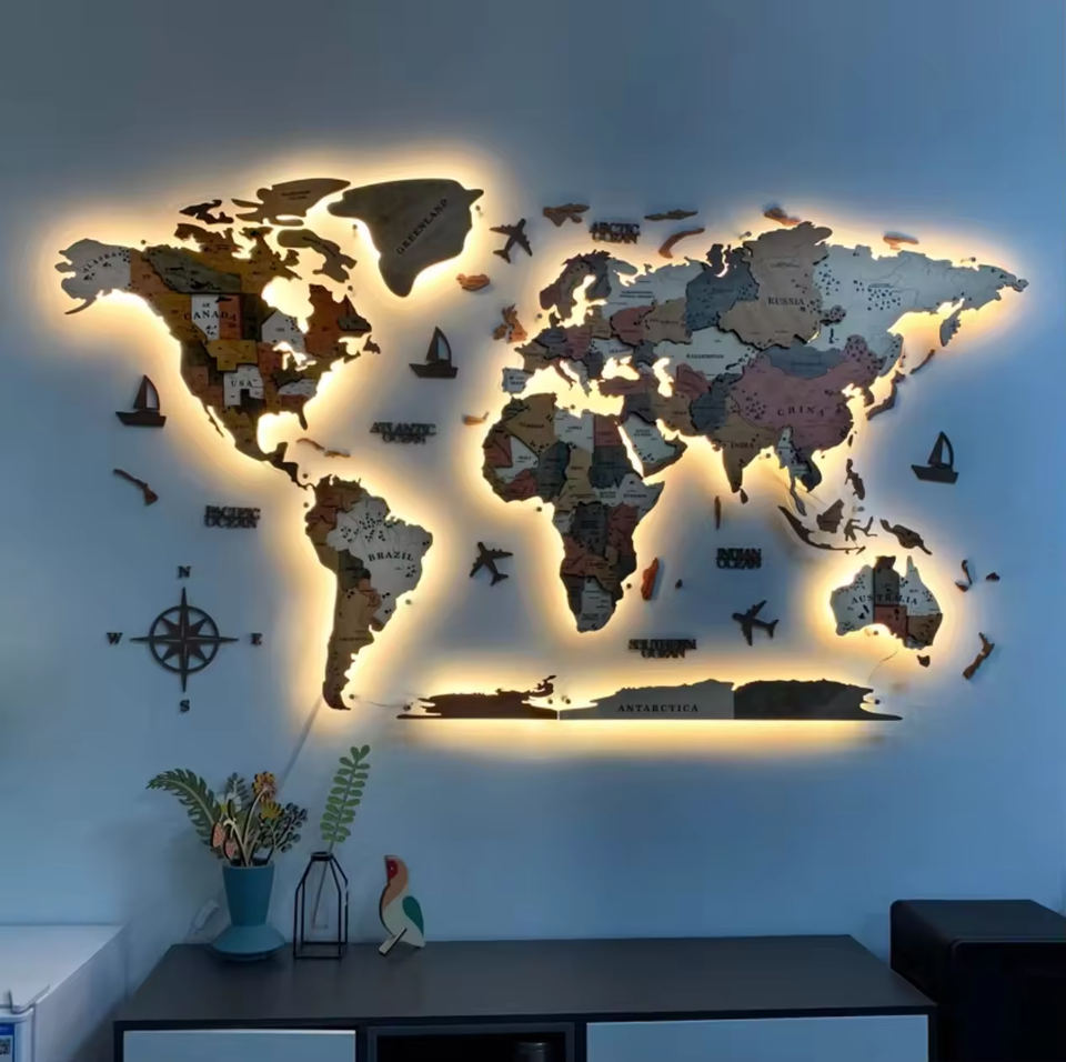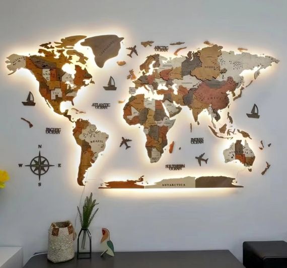Grande Mappamondo 3D in Legno da Parete Decorativo, Planisfero Ecologico Verniciato da Viaggio con Puntine per Arredamento in Legno