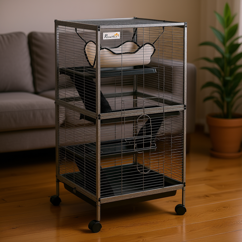 4-Tier Metal Pet Cage Gray with Hammock Removable Tray for Ferrets Chinchillas Small Animals Model D0100X3HCQ6