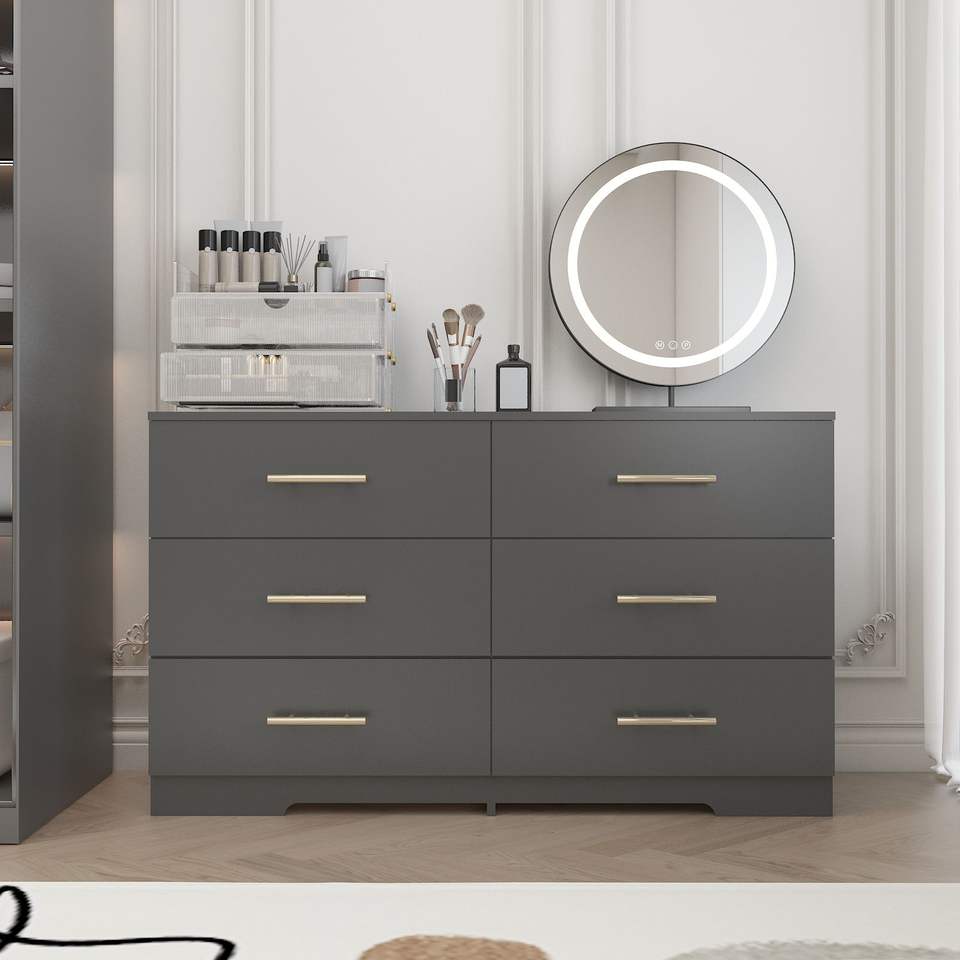 Grande Cassettiera Nera a 6 Cassetti con Maniglie Dorate, Mobile Cassettiera da Tavolo