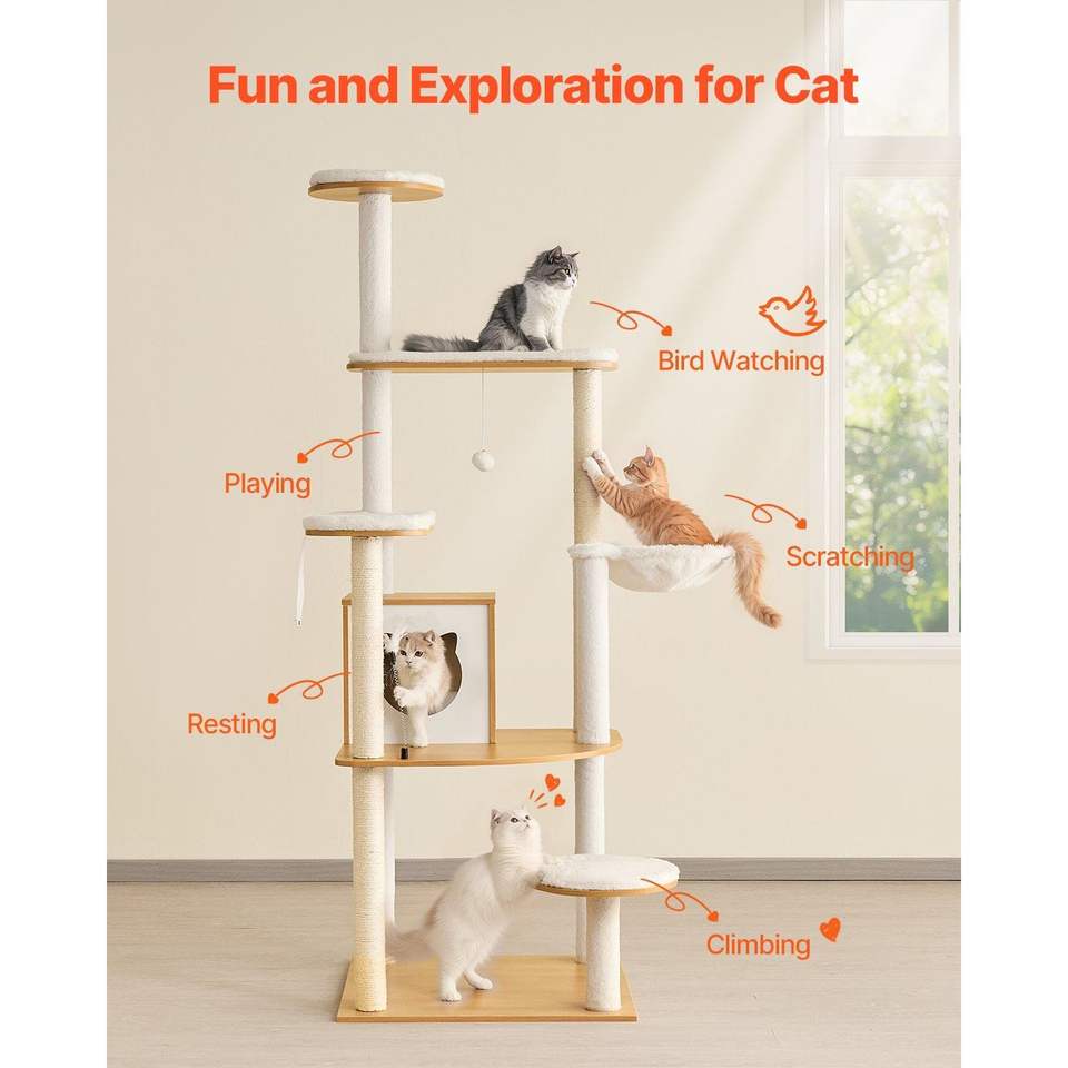 Grande Torre per Gatti a Più Livelli da 68,9 Pollici con Posizioni Confortevoli, Tiragraffi in Sisal e Centro Attività - Arredamento per Gatti