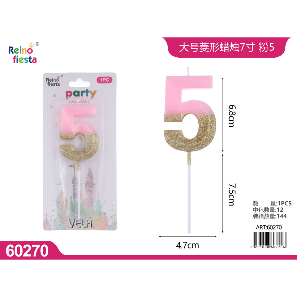 Grande 7 pollici rosa numero 5 candela con Glitter oro buon compleanno modello Stick per pasqua e capodanno festa decorazioni