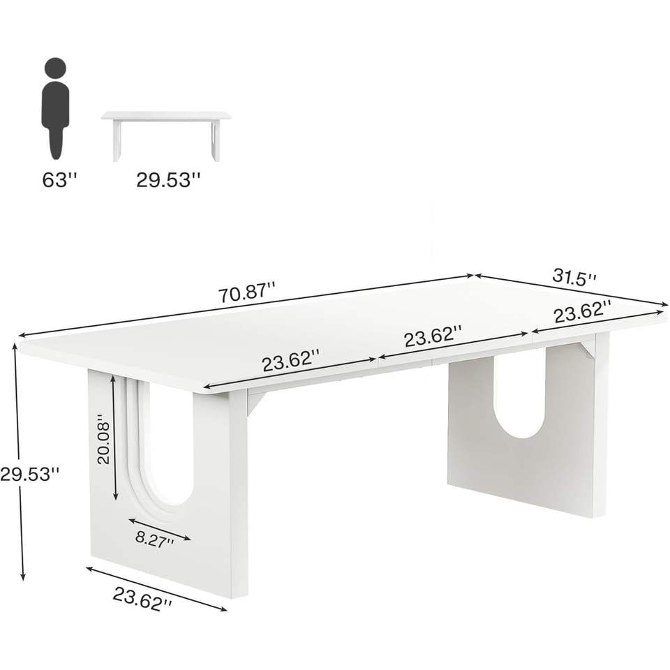 Grande Tavolo da Pranzo Rettangolare Moderno da 180 cm per 6-8 Persone con Base a Piedistallo in Legno, Tavolo da Cucina e da Cena