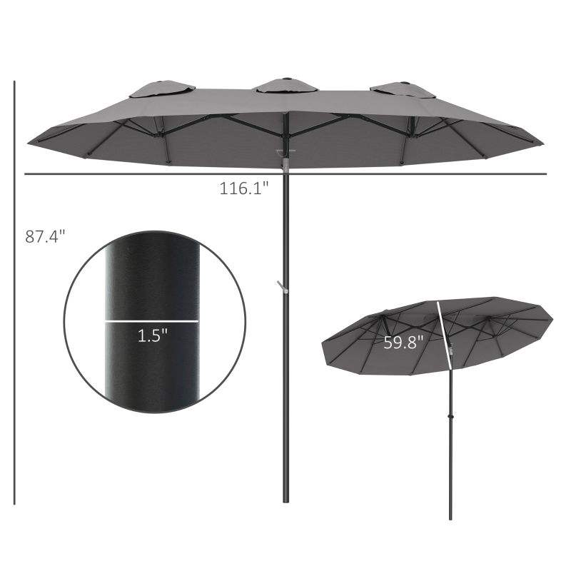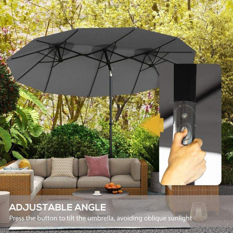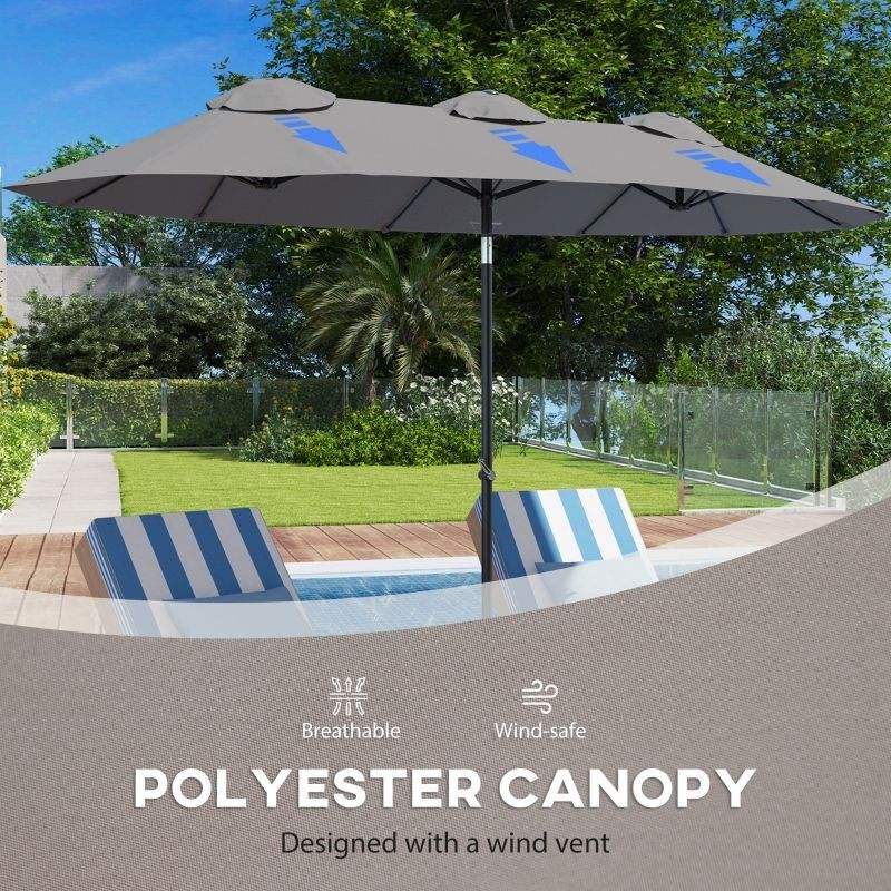 Grande Ombrellone da Esterno 24 cm (9.5'') a Doppia Faccia con Manovella Inclinabile a Pulsante, 3 Prese d'Aria e 12 Stecche per Patio