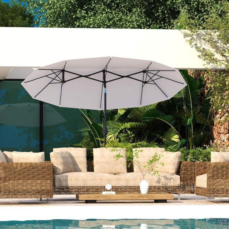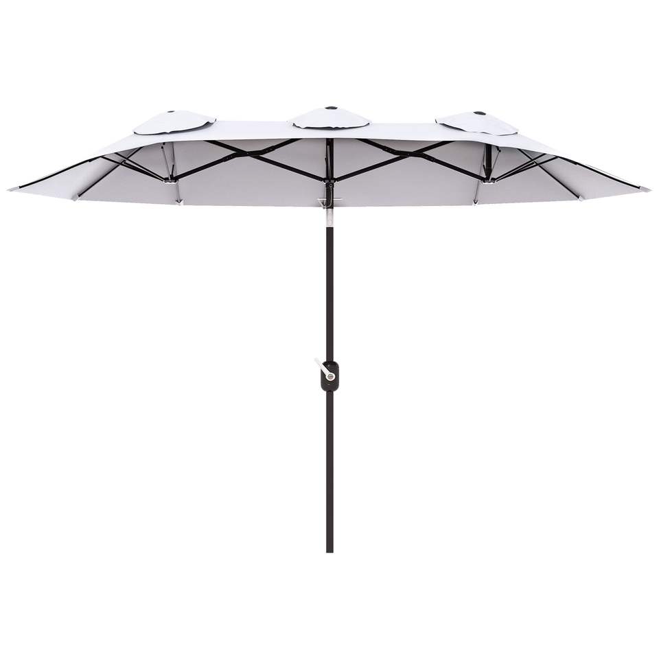 Grande Ombrellone da Esterno 24 cm (9.5'') a Doppia Faccia con Manovella Inclinabile a Pulsante, 3 Prese d'Aria e 12 Stecche per Patio