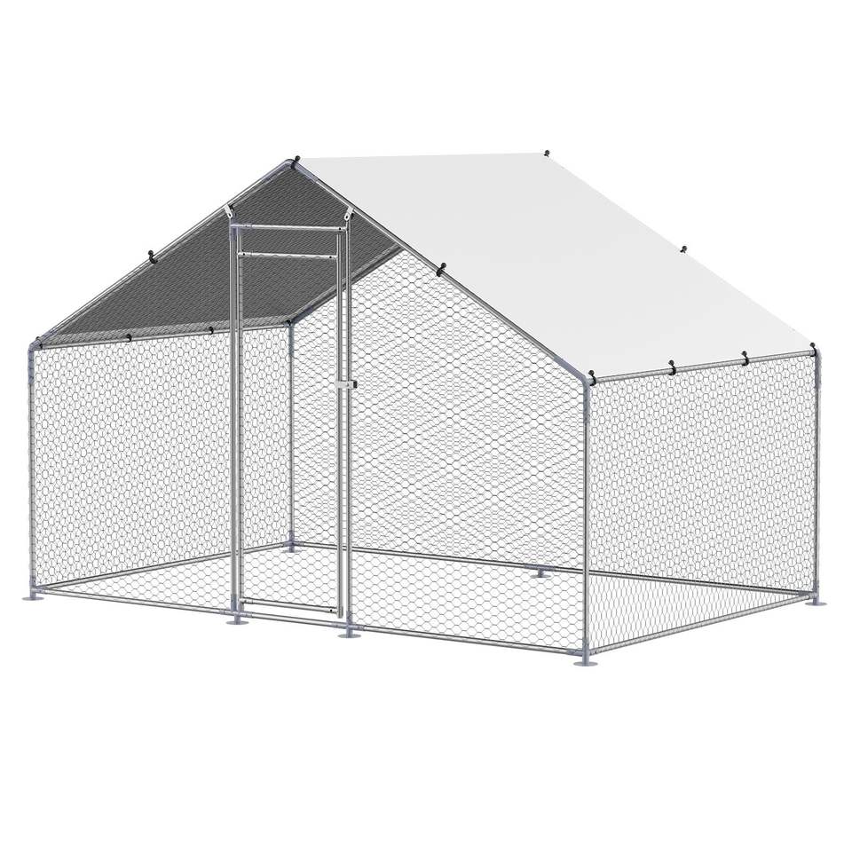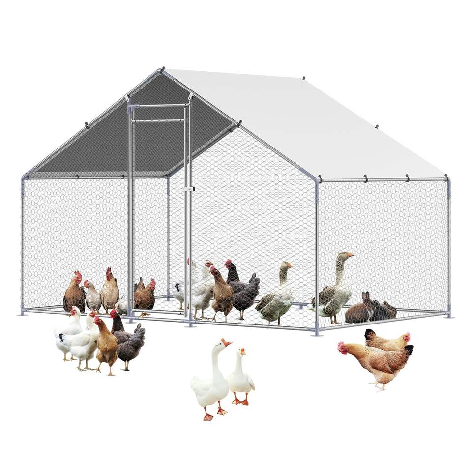 Grande Pollaio in Metallo 9.8x6.5x6.5ft con Tetto a Spiovente e Serratura di Sicurezza, Recinto per Galline con Copertura