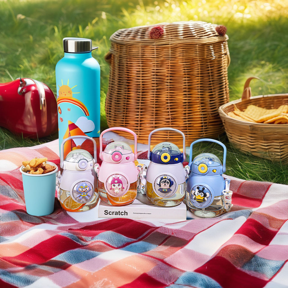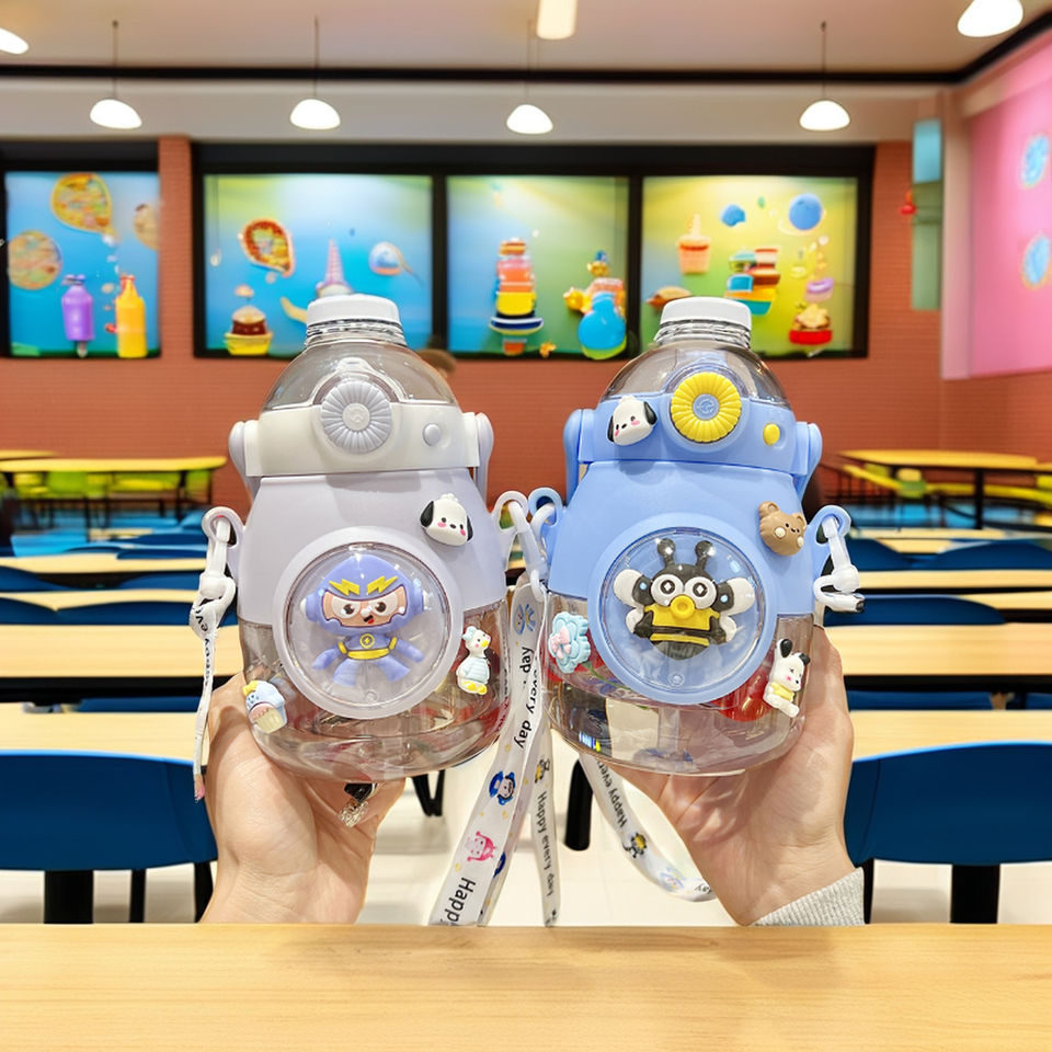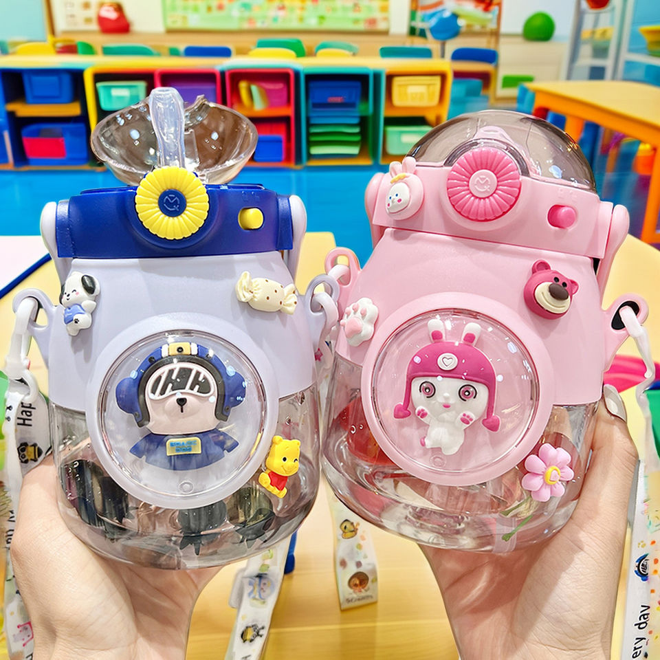 Grande 900ml tazza di sicurezza per uso alimentare coperchio della tazza di paglia simpatico personaggio dei cartoni animati Design retro bottiglia d'acqua per studenti della scuola grande tazza