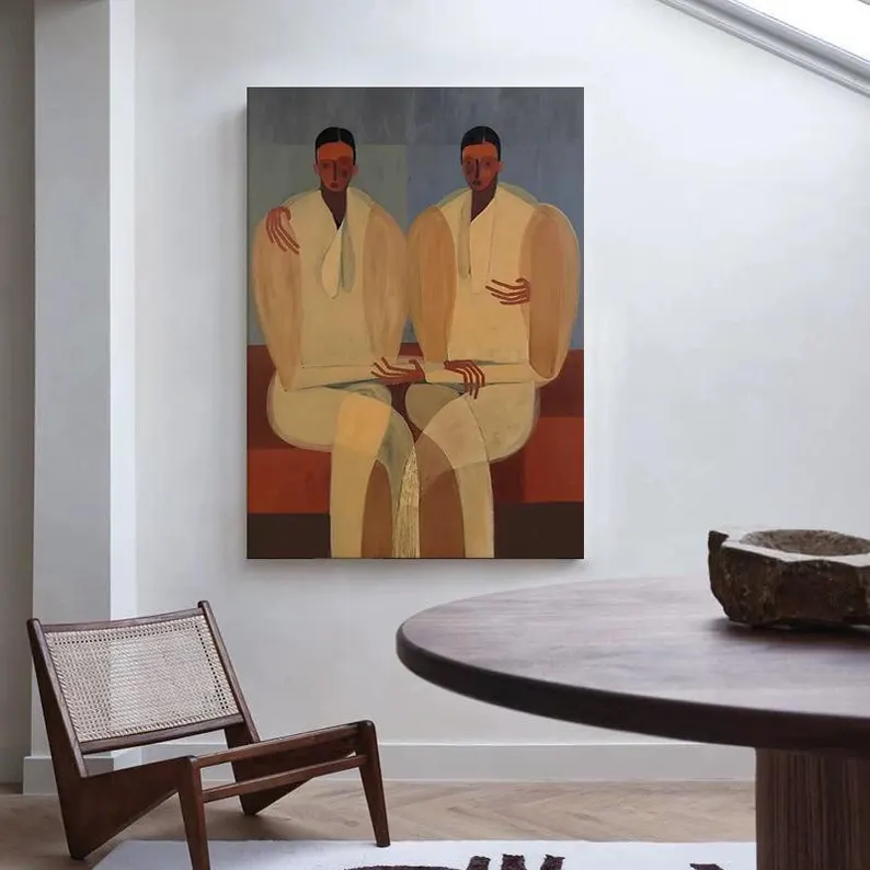 Grande Dipinto Astratto di Ritratto di Picasso: Arte Moderna da Parete Beige 120*100cm