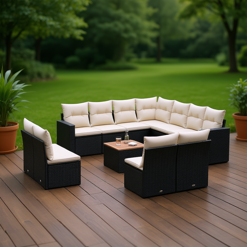 Set Divano da Giardino in Rattan PE Nero, Arredamento da Esterno Regolabile, Design Contemporaneo, Cuscini in Schiuma ad Alta Densità