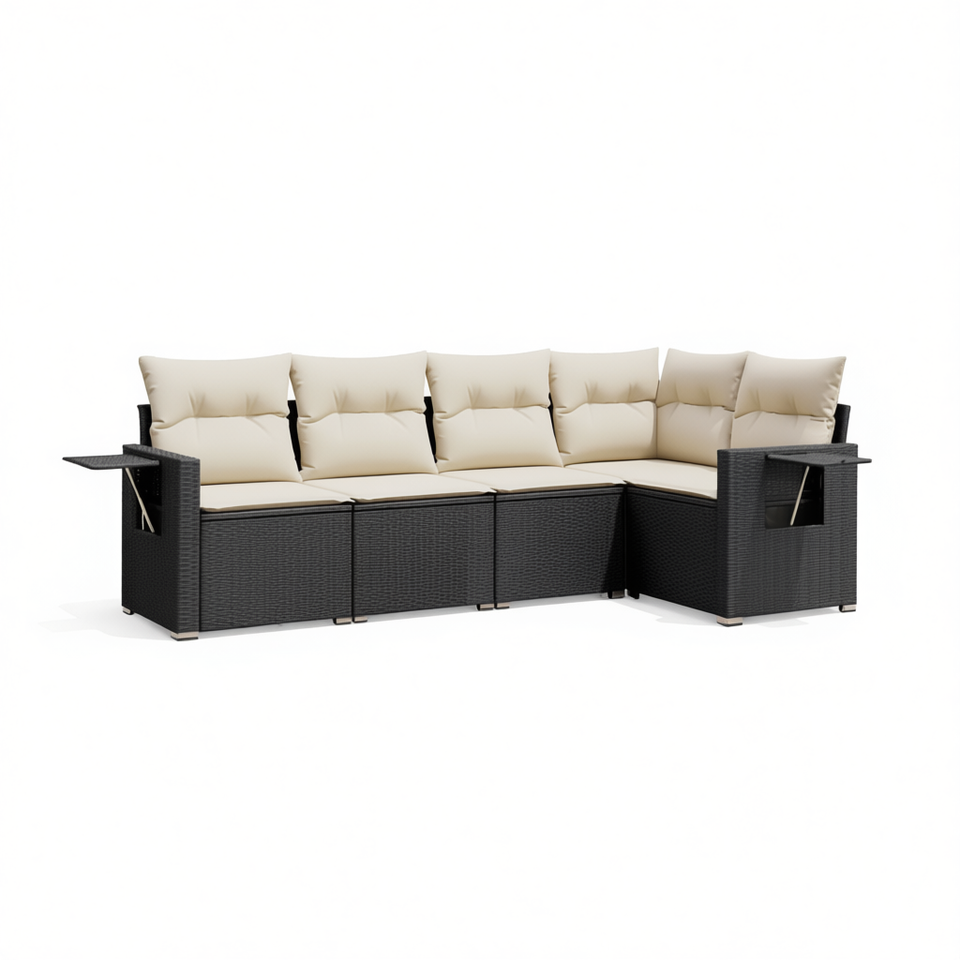 Set Divano da Giardino in Rattan Nero con Piedini Regolabili, Arredamento da Esterno dal Design Contemporaneo, Cuscini in Schiuma ad Alta Densità