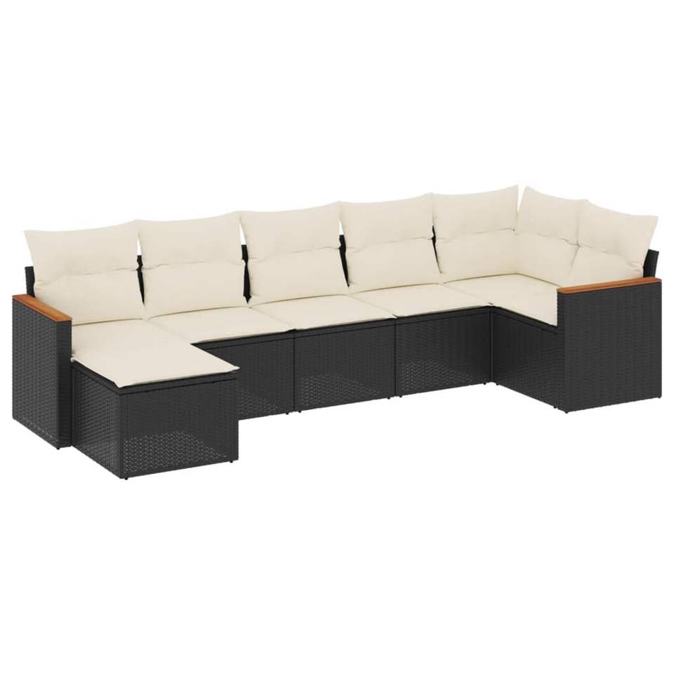 Set Divano da Giardino in Rattan PE Nero con Piedini Regolabili Grandi