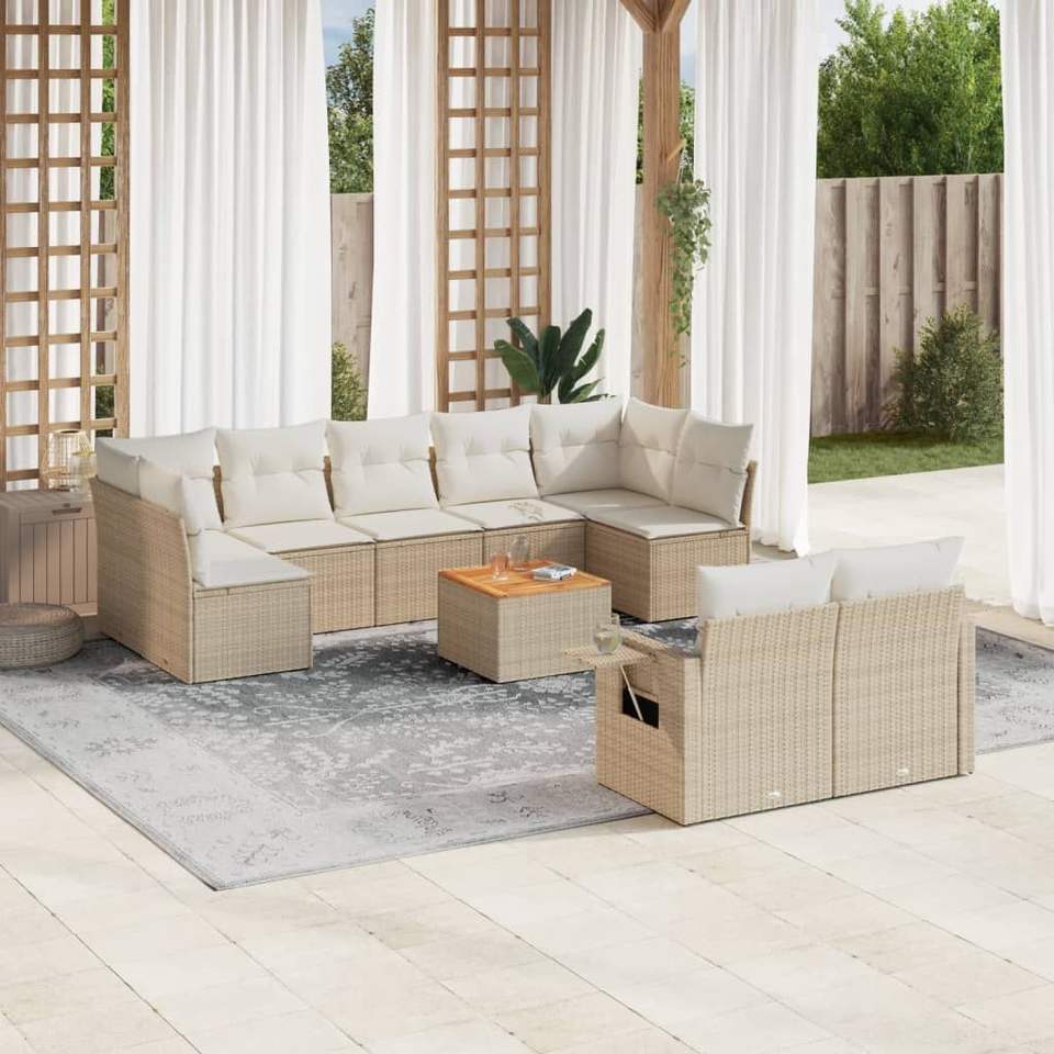 Large Adjustable Feet Garden Sofa Set in Beige PE Rattan Adjustable Garden Furniture