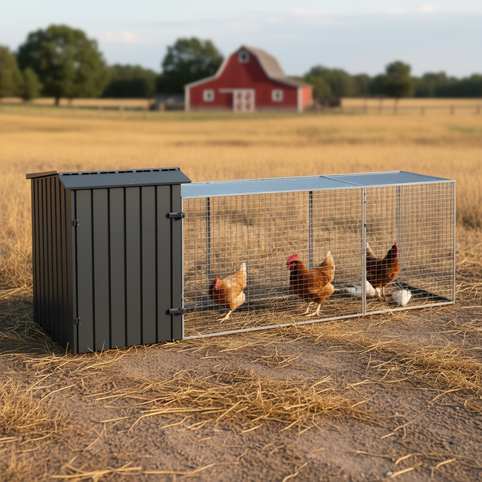 Grande Gabbia per Polli in Acciaio Zincato Antracite per la Cura del Pollame