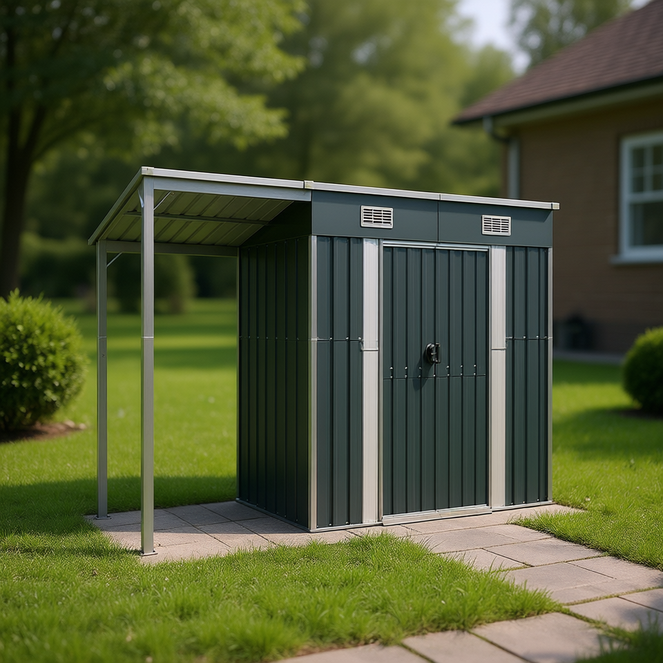 Grande Capanno da Giardino in Acciaio Zincato Antracite con Spazio di Stoccaggio in Plastica per Uso Esterno