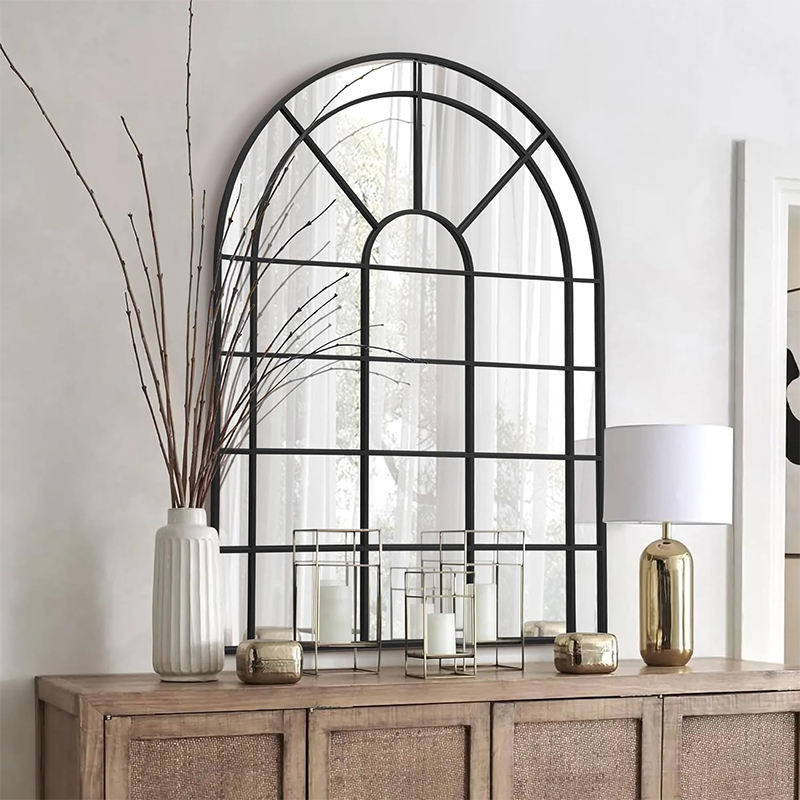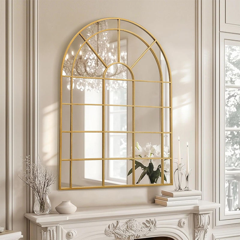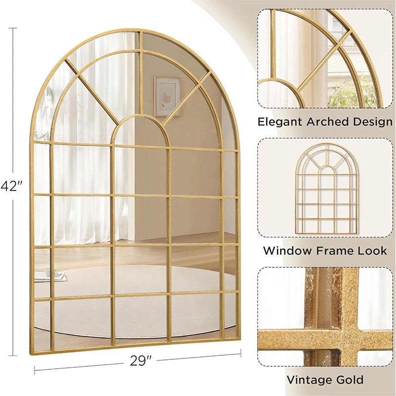 Grande Specchio ad Arco Dorato Decorazione Murale Stile Fattoria, Specchio Decorativo a Griglia per Ingresso, Corridoio, Soggiorno