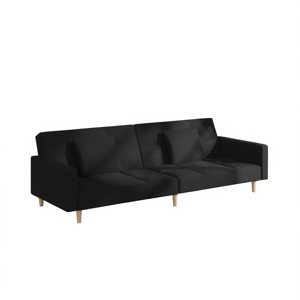 Sofa Bed 3 Seater Black 100% Polyester Foam Encased Wood Frame Modern Living Room