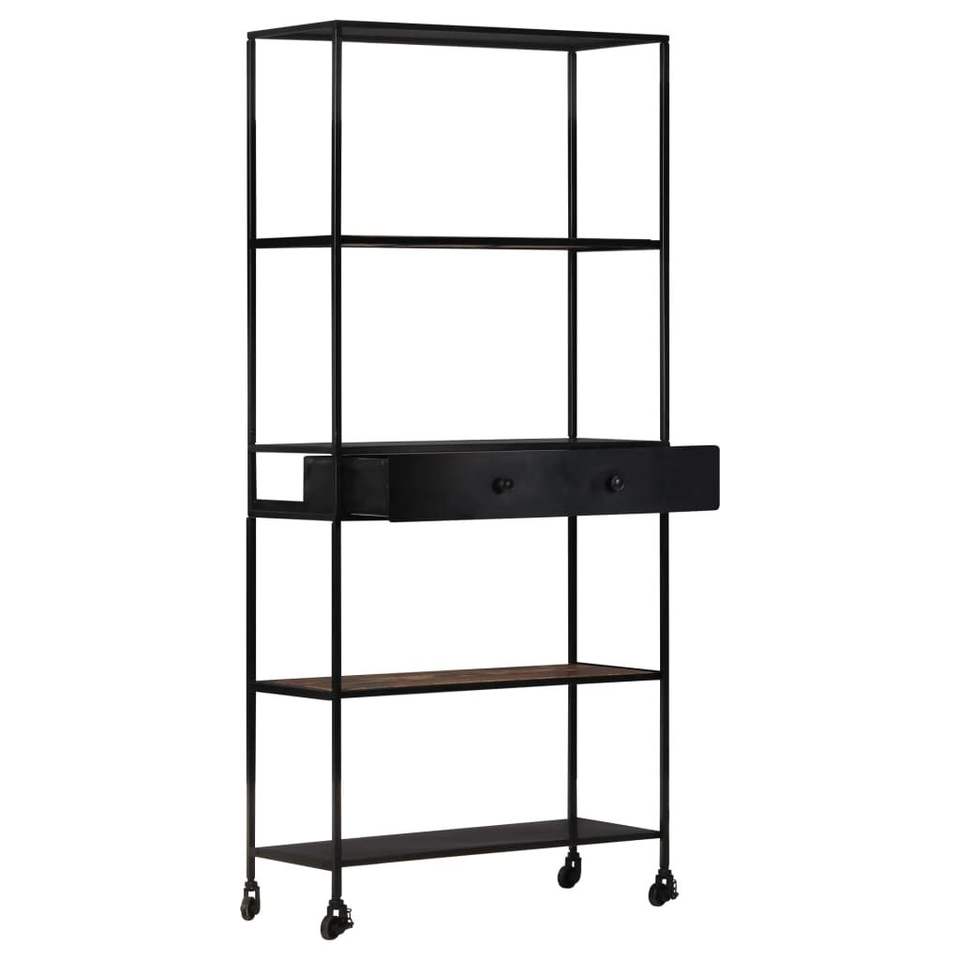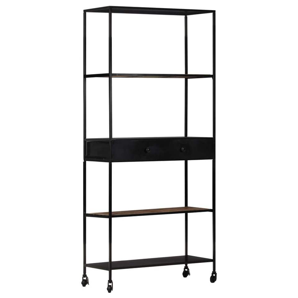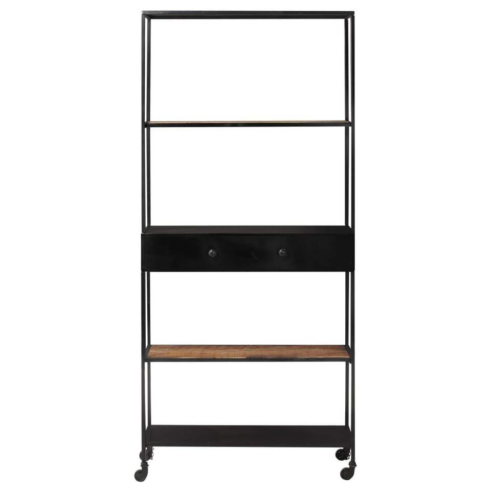 Grande Libreria Nera con Legno di Mango Naturale e Finitura Rustica in Ferro Grezzo