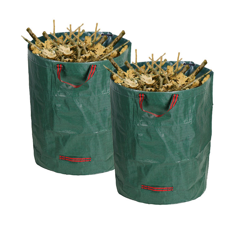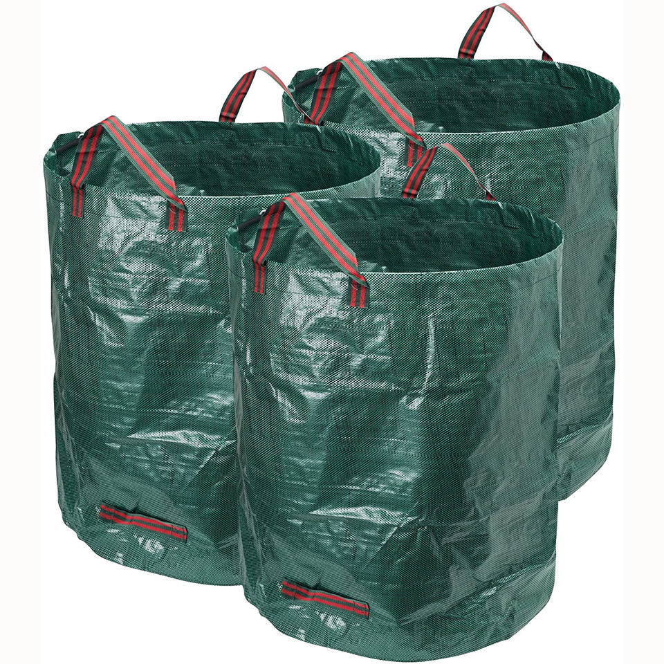 Large Capacity 3 Pieces 120L Portable Waterproof PP Woven Foldable Outdoor Garden Garbage Collection Handle Fallen Leaf Bag