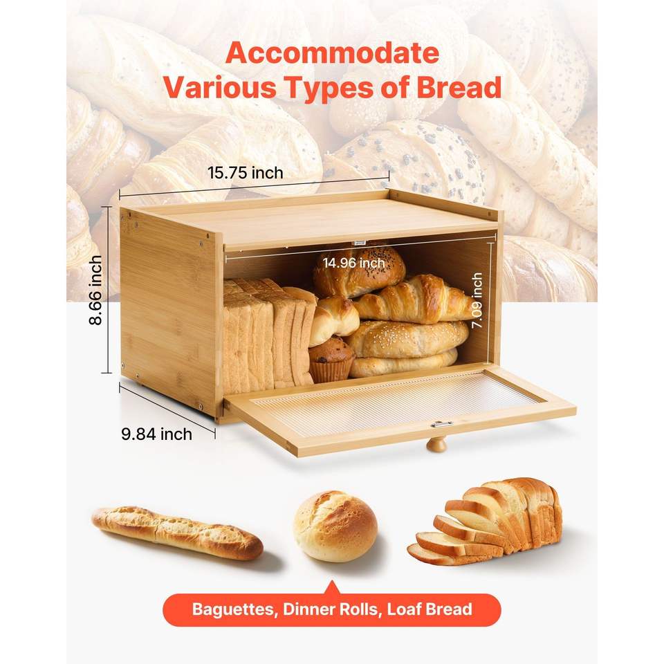 Contenitore per Pane in Bambù di Grande Capacità, Organizzatore da Cucina, Portapane in Legno Stile Rustico per Pane Fatto in Casa