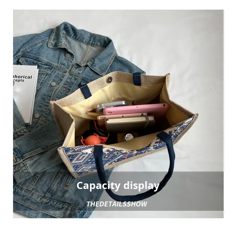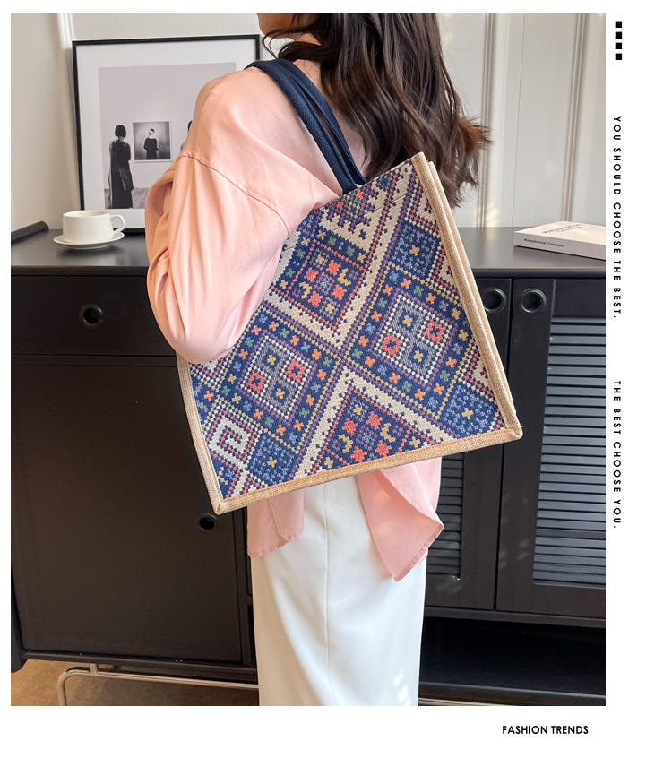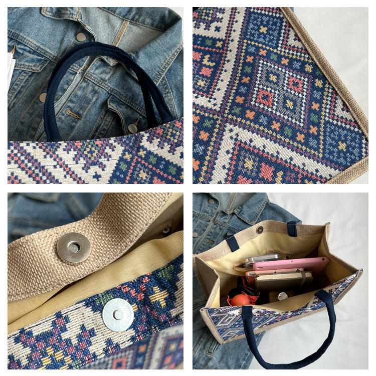 Borsa a Tracolla in Tela Grande Capacità Nuova Moda Etnica Stile Retrò Europeo Americano Borsa Tote Quotidiana per Studenti