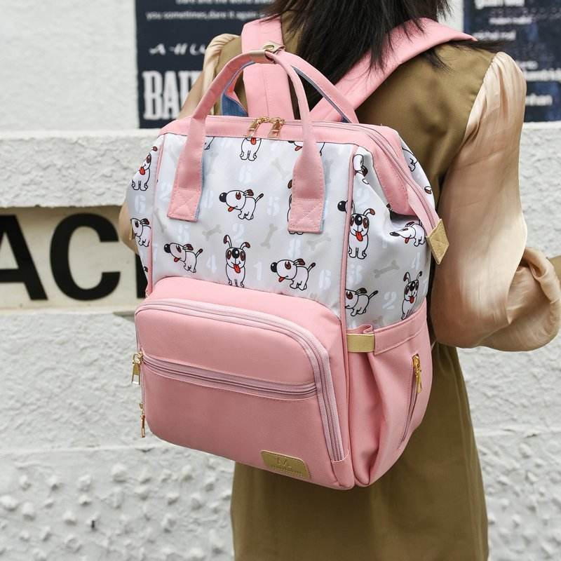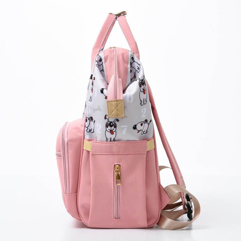 Zaino Fasciatoio Grande Capacità per Mamme, Design Cartoon Rosa, Borsa da Viaggio per Neonati e Maternità