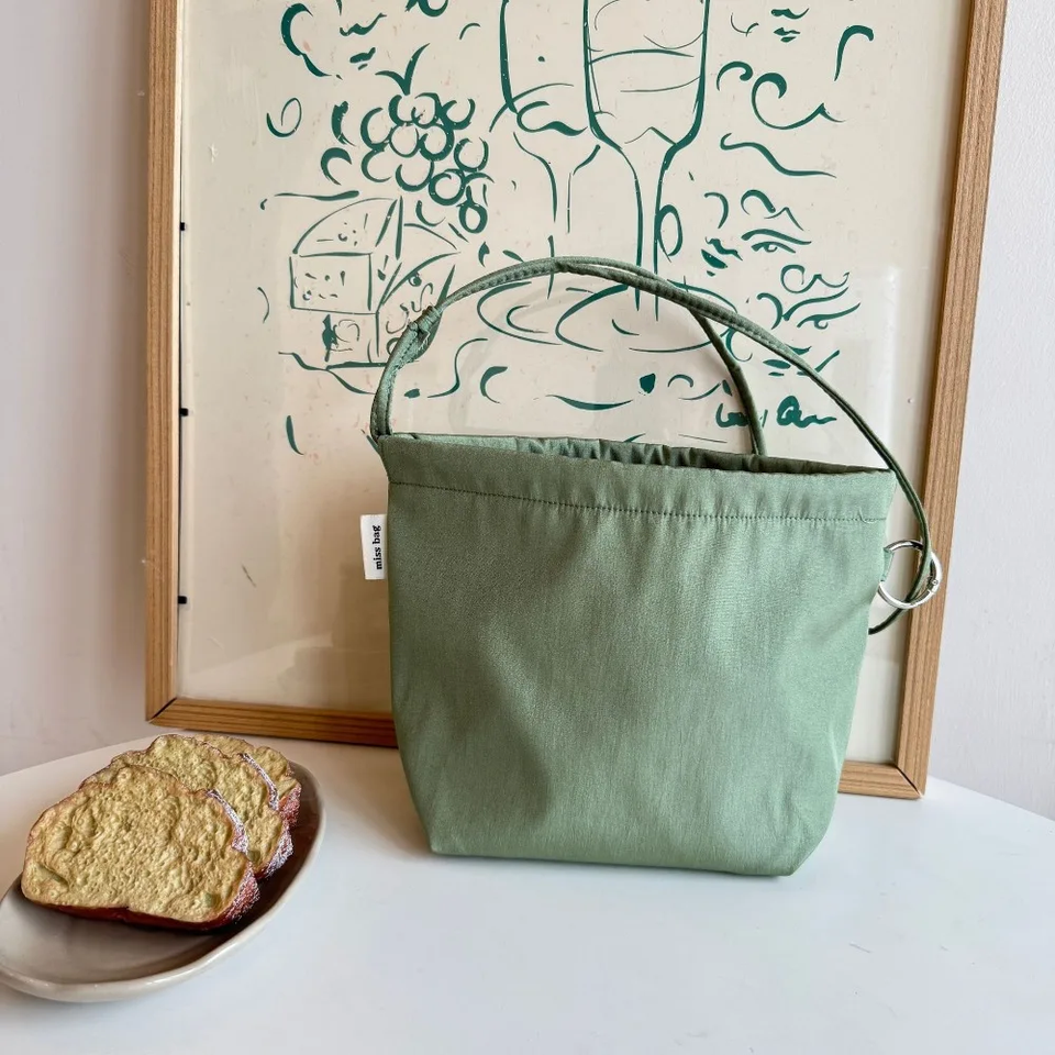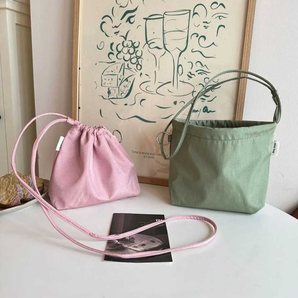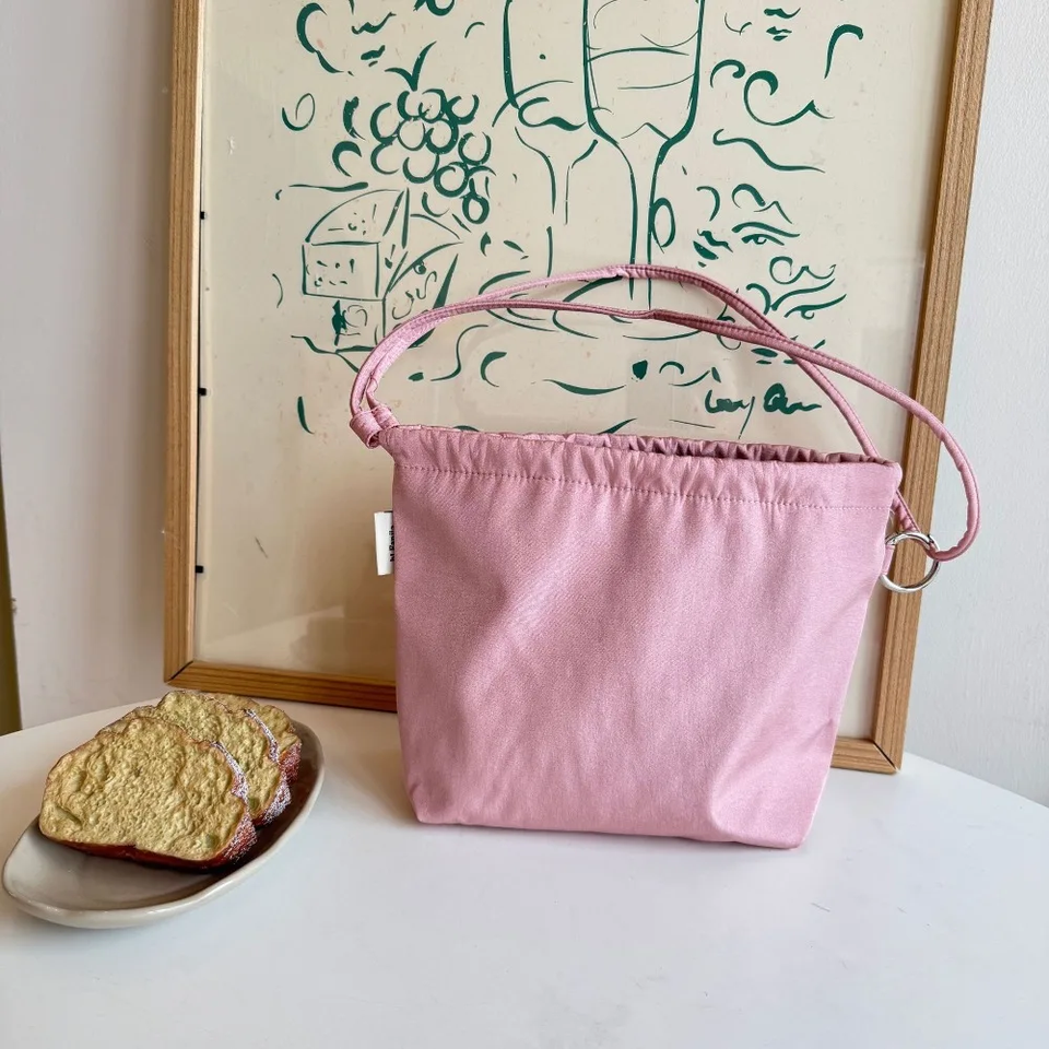 Large Capacity Korean Style Cloud Bag Reusable Pleated Drawstring Tote Solid Color Canvas Shoulder Bag School Style Bucket Bags