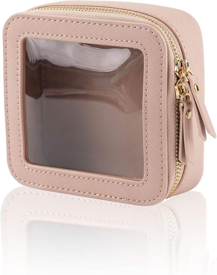 Borsa Cosmetica Trasparente in PVC e Pelle PU di Grande Capacità, Portatile con Cerniera, Impermeabile