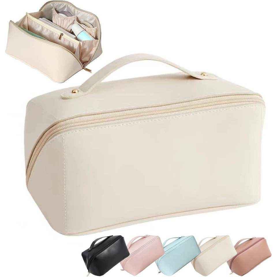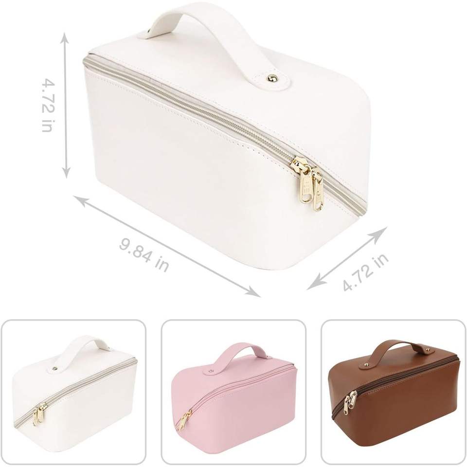 Borsa da Viaggio per Cosmetici a Quadretti Bianca di Grande Capacità con Manico e Divisorio, Valigetta Multifunzionale Impermeabile per Facile Accesso