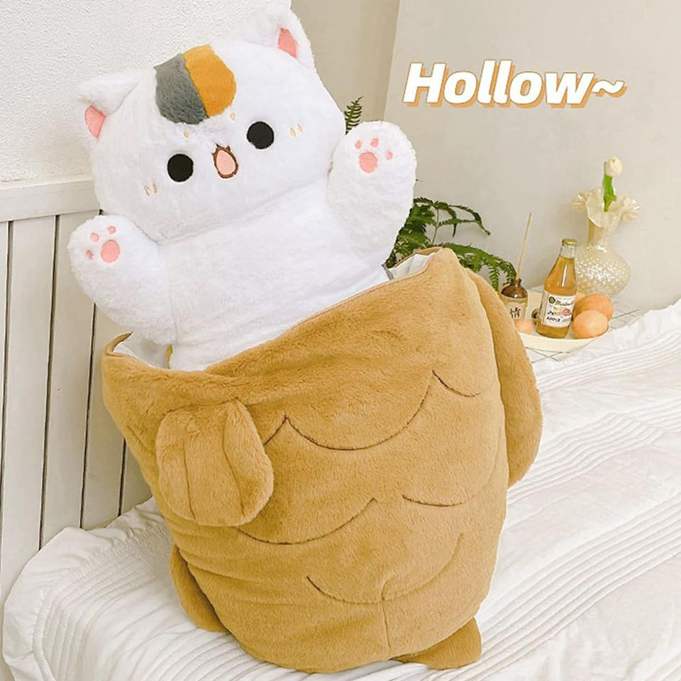 Grande Cuscino Peluche a Forma di Gatto, Simpatico Gattino Pesce 2 in 1, Divertente Giocattolo Imbottito, Bambola per Dormire per Ragazze e Ragazzi, Peluche Inside Out