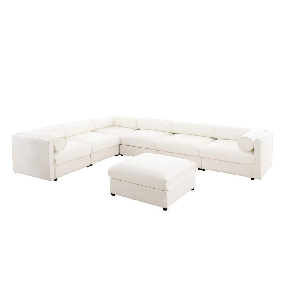Grande divano componibile in ciniglia bianco componibile con ripostiglio 6 posti soggiorno divano con schienale cilindrico braccioli