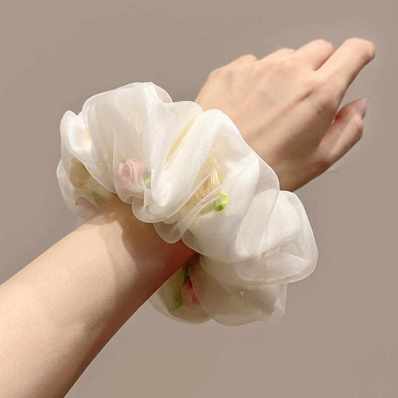 Large Chiffon Flower Hair Band for Kids Fresh and Sweet Bun Hairstyle Hair Accessories Party Style Rubber Band Hair Band