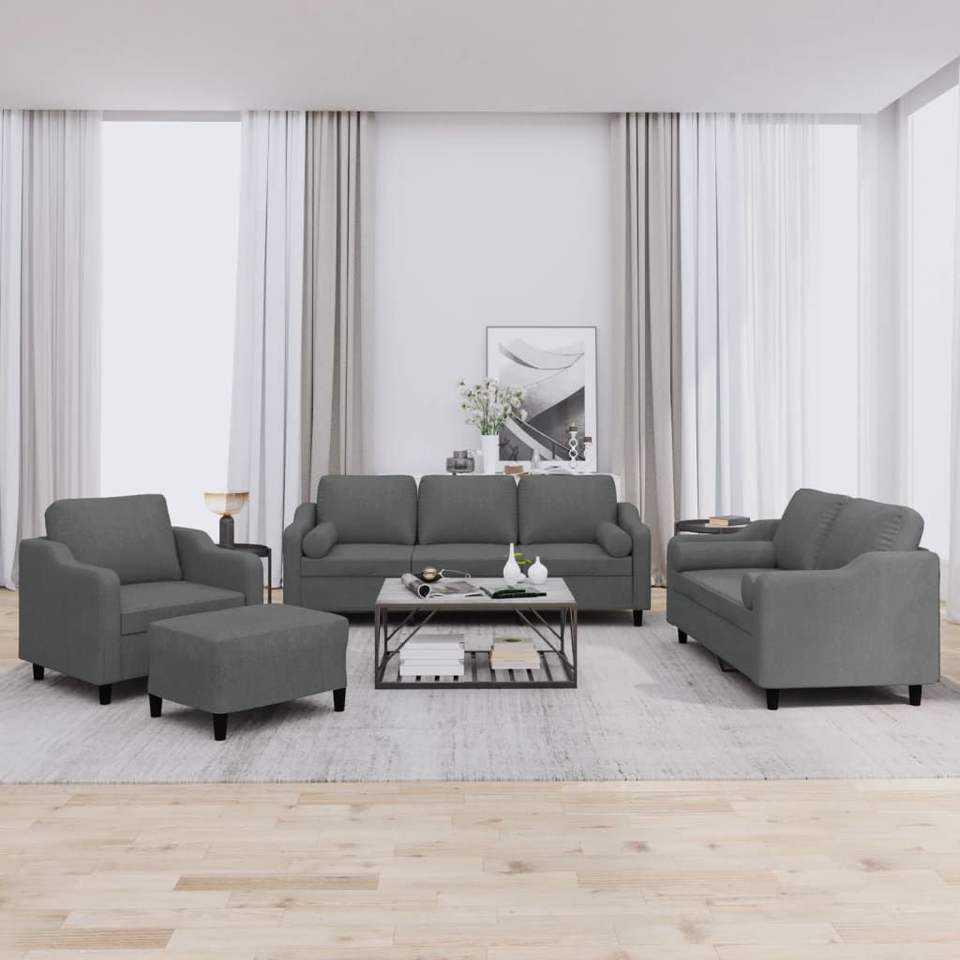 Grande Set di Divani in Tessuto Grigio Scuro 100% Poliestere con Struttura in Metallo e Compensato per Soggiorno