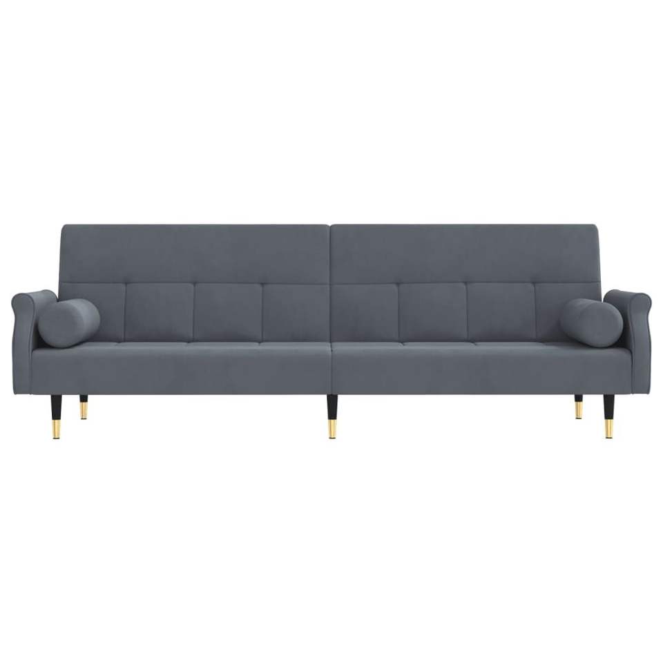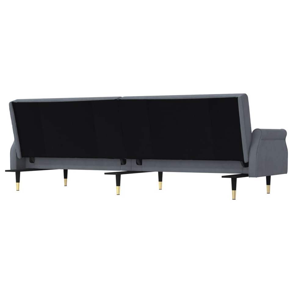 Grande Divano Letto in Velluto Grigio Scuro con Struttura in Compensato e Metallo