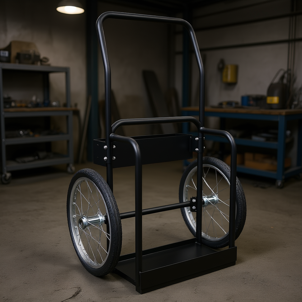 Oxygen Tank Cart Dolly 20 Inch Pneumatic Wheels Black Metal Welding Equipment