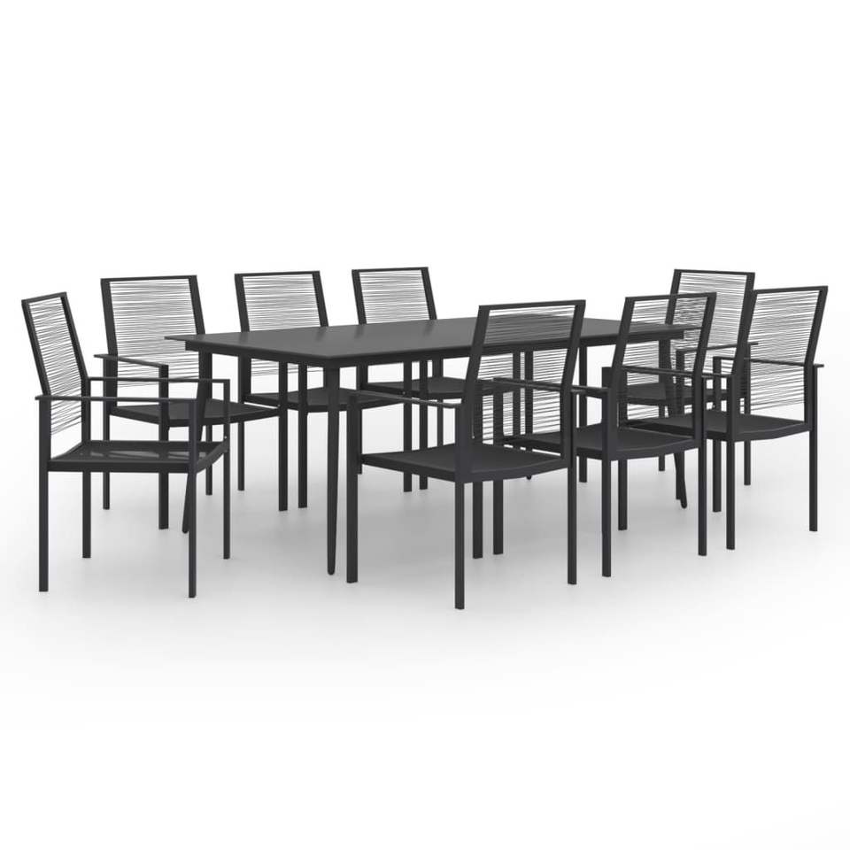 Set da Pranzo in Vetro Nero per 8 Persone, Arredamento da Giardino Contemporaneo con Telaio in Acciaio, Design Durevole