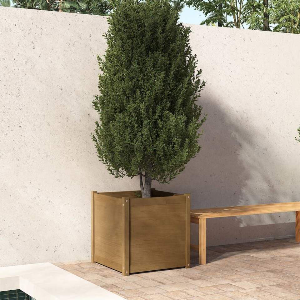 Grandi Fioriere e Vasi da Giardino in Legno di Pino Massiccio Marrone Miele, Resistenti e Durevoli