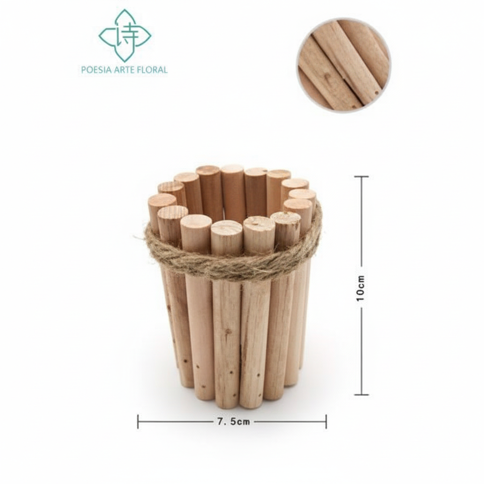 Large Eco-Friendly Glazed Wooden Pot Small Cylindrical Flower Tub for Outdoor Usage with Artificial Flowers Square Pattern