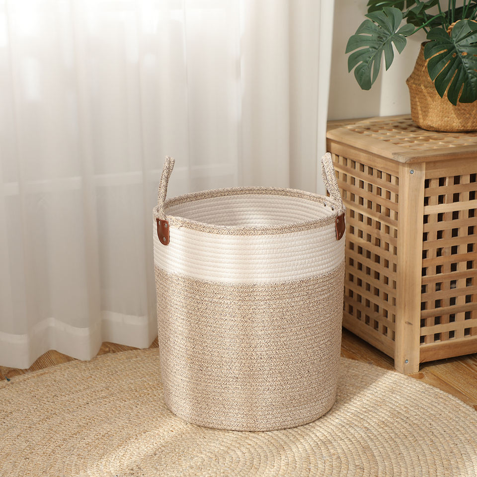 Grande cesto di stoccaggio della biancheria ecologico con ferro di bambù in tessuto di vimini manici per l'organizzazione domestica e la conservazione dei vestiti