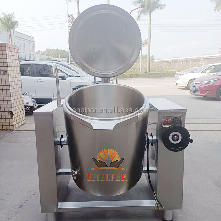 Inclinazione grande Elettronico Zucchero Gas Commerciale A Vapore Bollente Con Miscelatore Acqua 500 Litro Elettrico Rivestito Bollitore Pan Per La Cottura