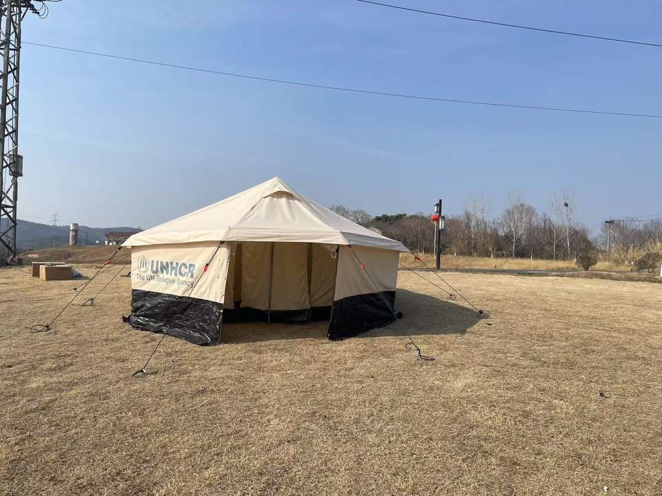 La tela di cotone impermeabile delle tende di soccorso in caso di calamità della grande famiglia è usata come rifugi di emergenza per i rifugiati e le vittime del disastro