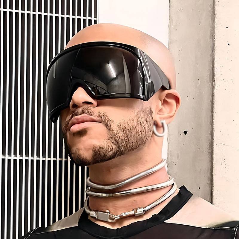 Maschera con montatura grande Y2k Future Cool Wrap Around futuristici occhiali da sole oversize occhiali da sole firmati alla moda