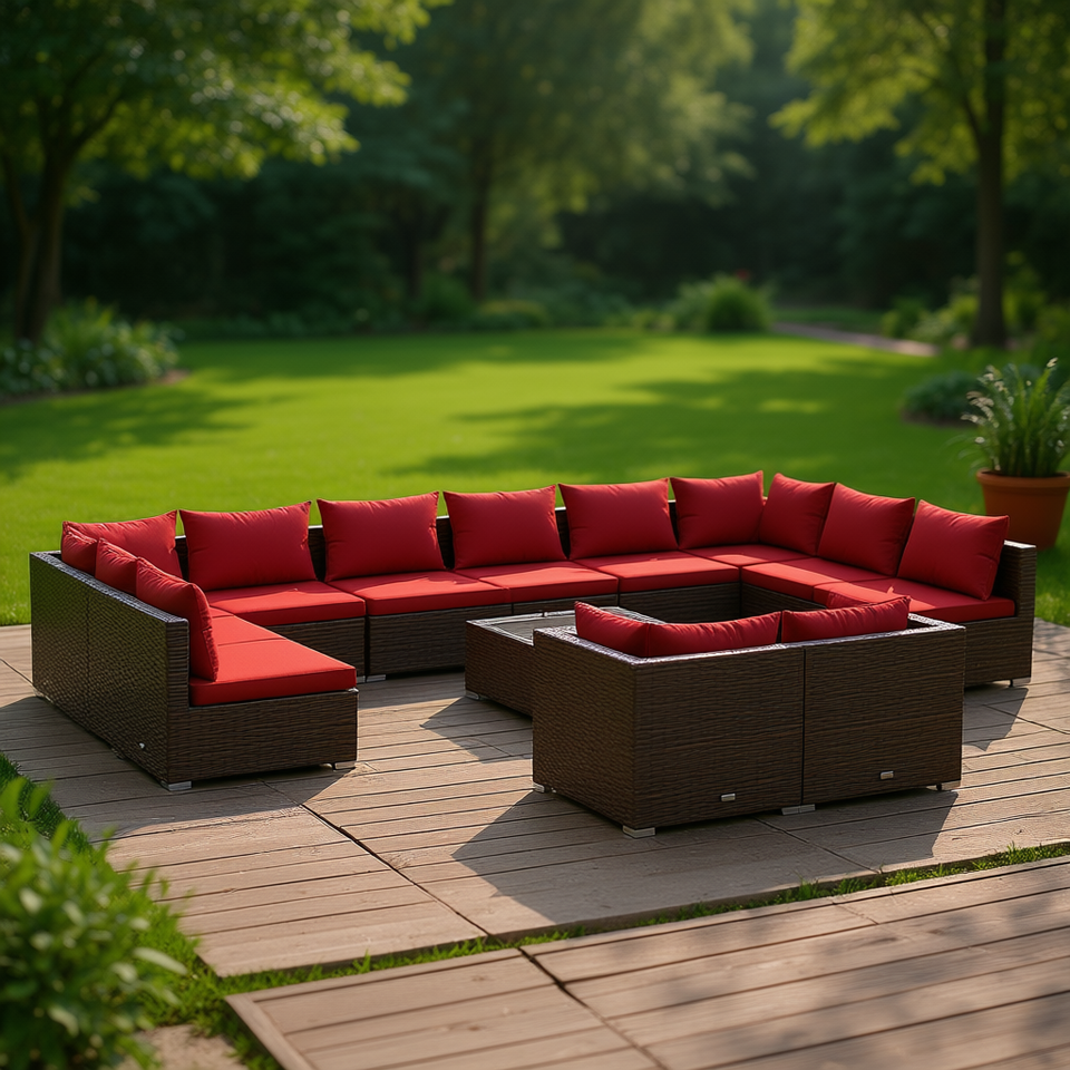 Set Lounge da Giardino in Rattan PE Marrone 10 Posti Arredamento da Esterno Design Contemporaneo Resistente alle Intemperie