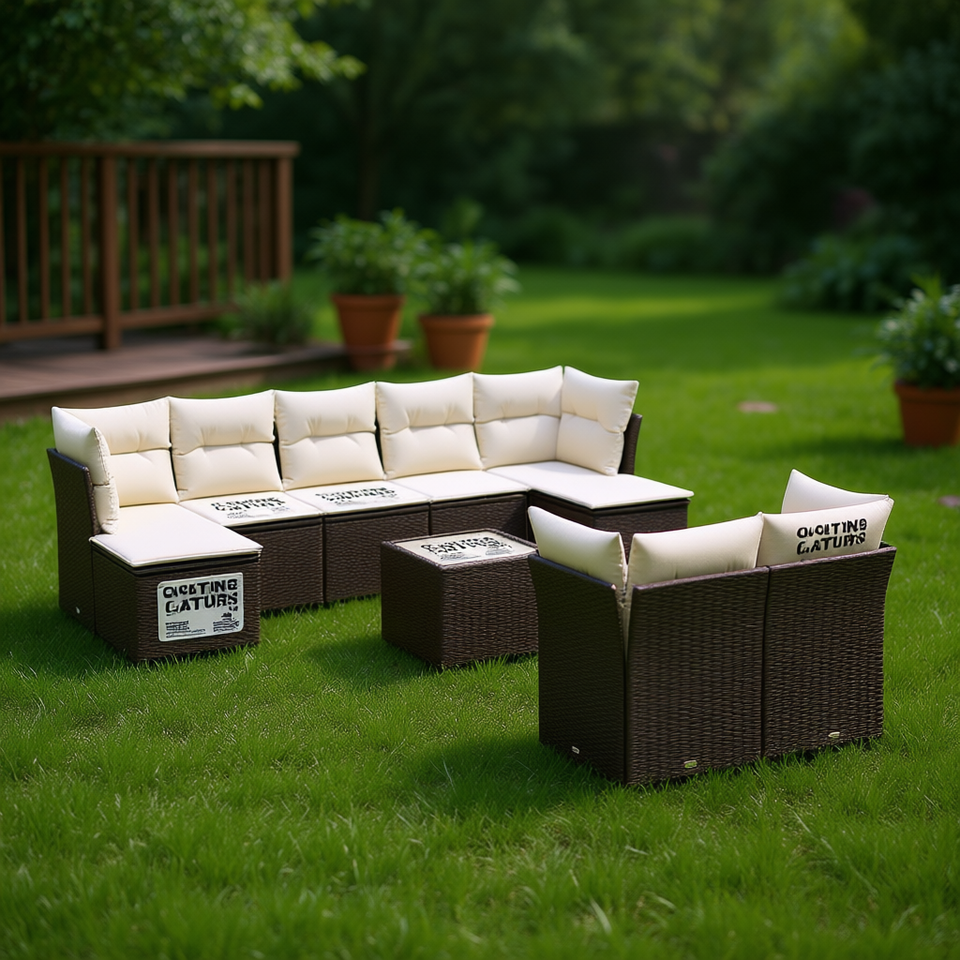 Set Divano da Giardino Catures in Rattan PE Marrone, Arredamento Elegante e Resistente con Cuscini in Schiuma ad Alta Densità