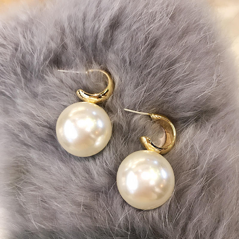 Grandi orecchini pendenti placcati oro imitazione perla geometrica a forma di arco stile palazzo esagerato alla moda