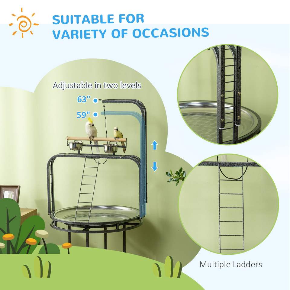 Grande Supporto per Uccelli in Legno Grigio con 3 Scale, Gancio per Giocattoli e Posatoio per Pappagalli, Accessori per Uccelli