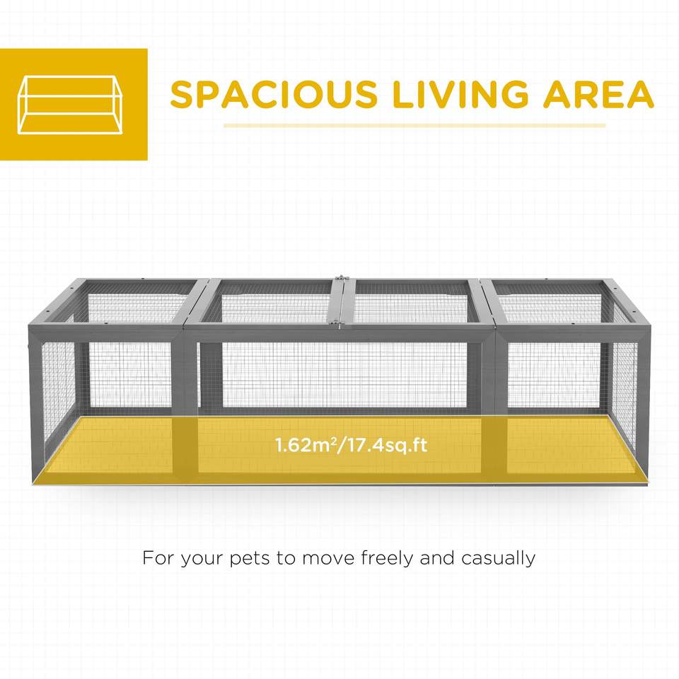 Grande Conigliera in Legno Grigio con Porte Chiudibili, Habitat per Piccoli Animali, Recinto Esterno, Casette e Mobili per Animali Domestici